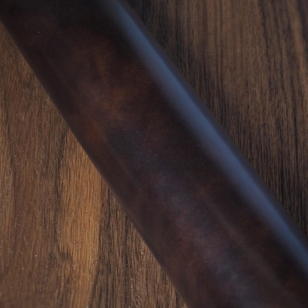 Leder Ogawa’s shells are hand dyed and finished. Compared to Shinki’s, they are less glossy, more uniform and have fantastic depth of color.