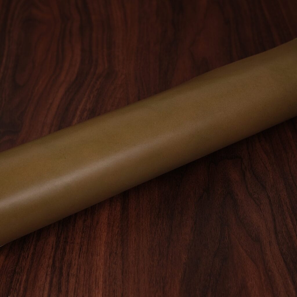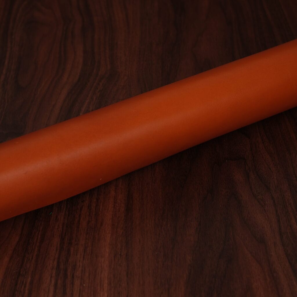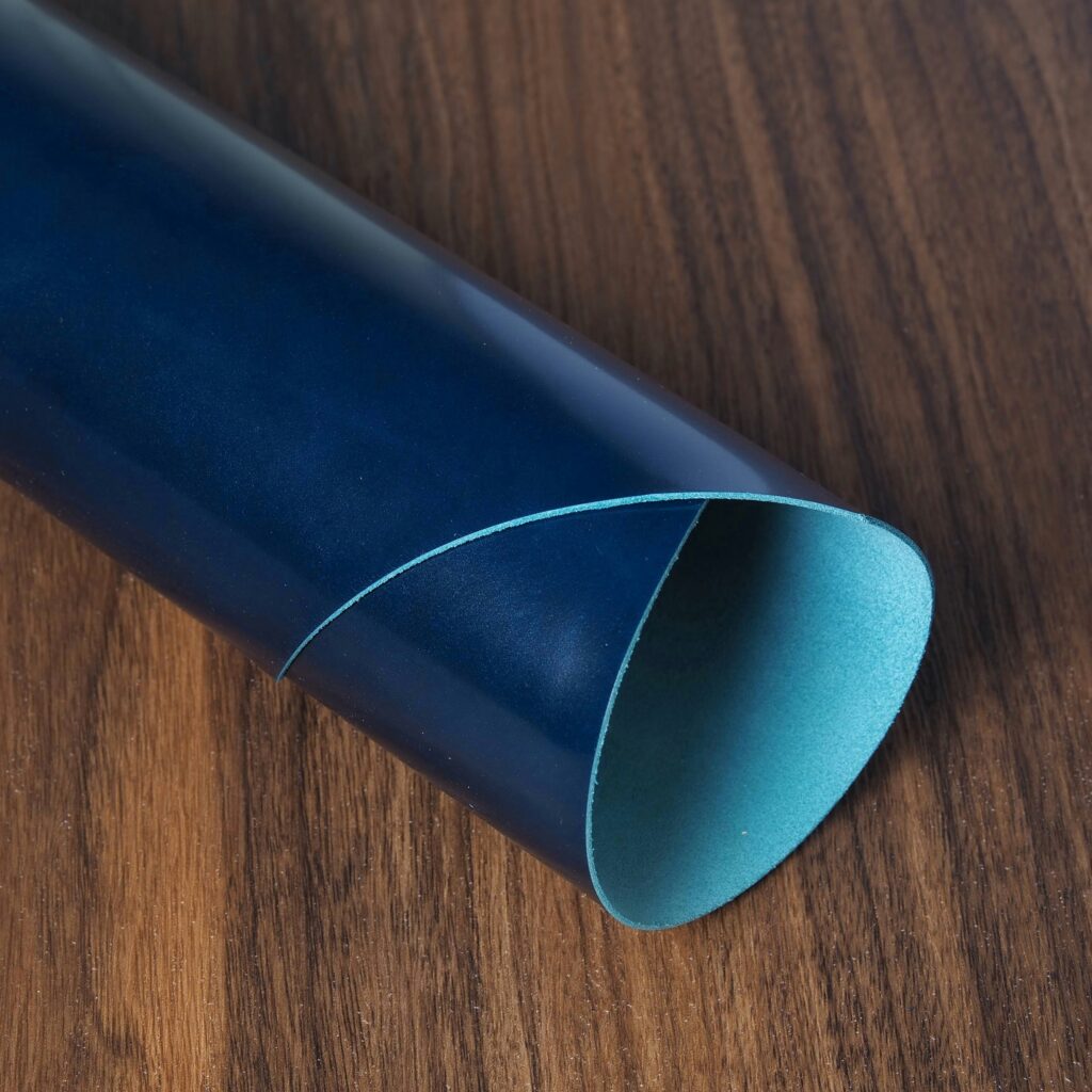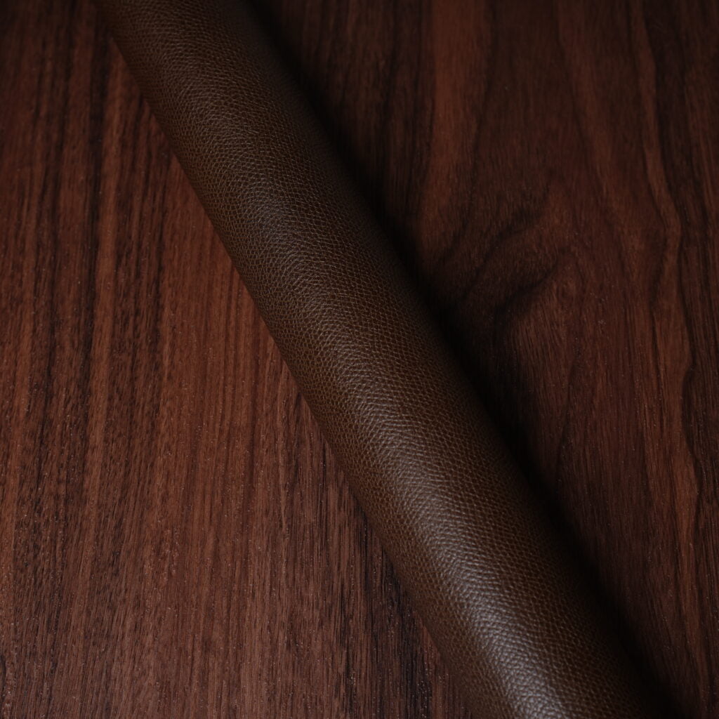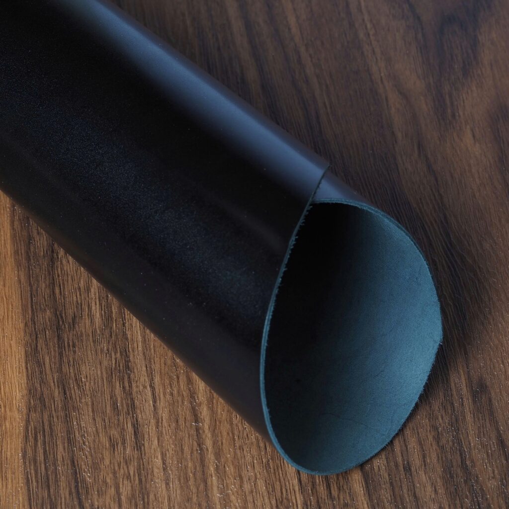 This is one of the world’s best known leathers, thanks to its extensive use in fine footwear. Museum calf is slightly glossy with a lovely marbling dye effect. The colors come off fairly dark and understated. It has a pleasant soft hand, yet firm temper. Softens with age and brushes up beautifully. Excellent choice for the exterior of items.