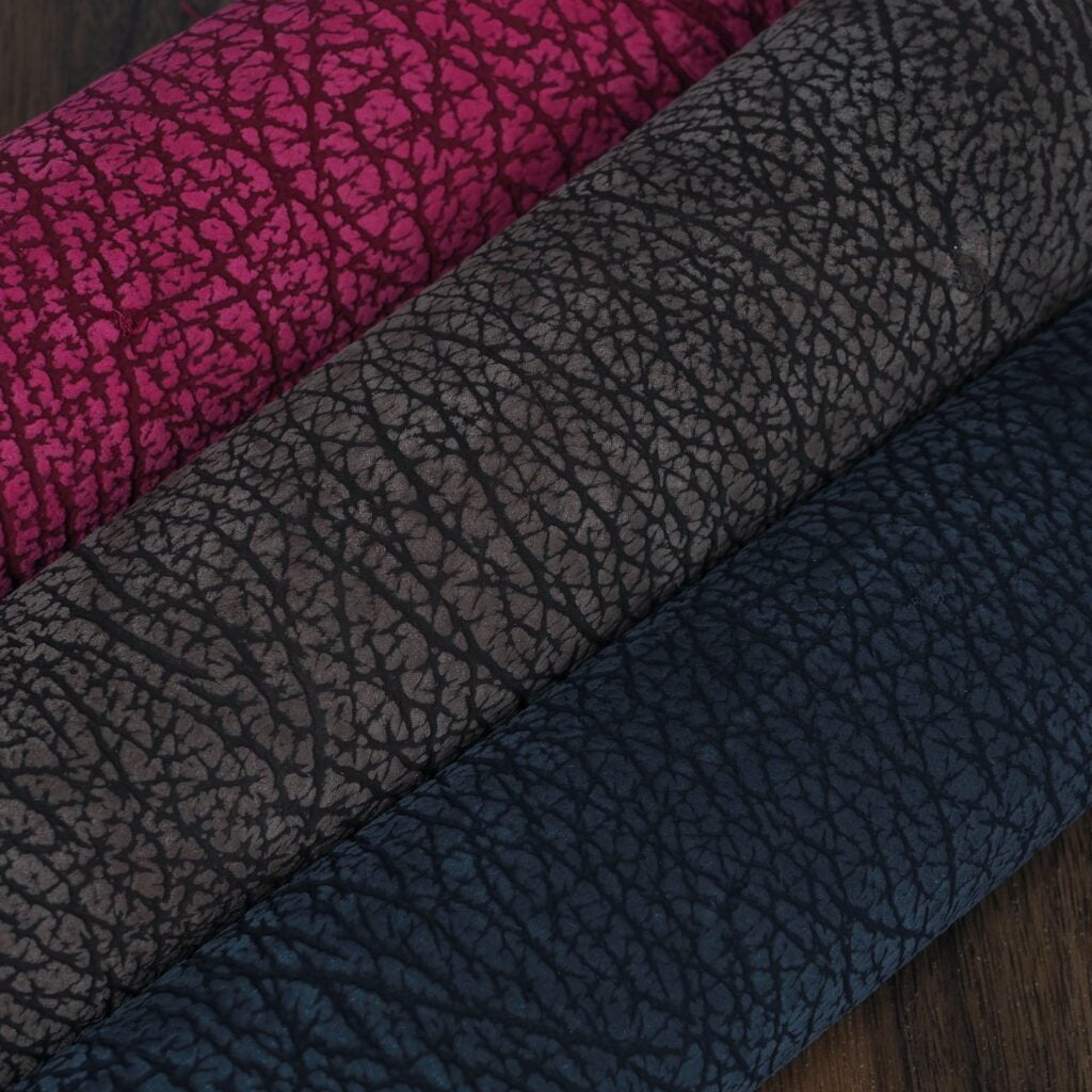 Sherpa is buffalo calfskin produced by French Tannery, Remy Carriat. Compared to other bovine leathers, it has a more exotic looking grain. It also is a very tough leather that resists wear very well. Despite its toughness, it still retains very pleasant, soft feel. Works great for both the interior or exterior of items and there’s plenty of colors to choose from. Note: Turquoise, Teal, Cognac & Gray are currently out of stock. Please see new Chèvre colors to substitute.