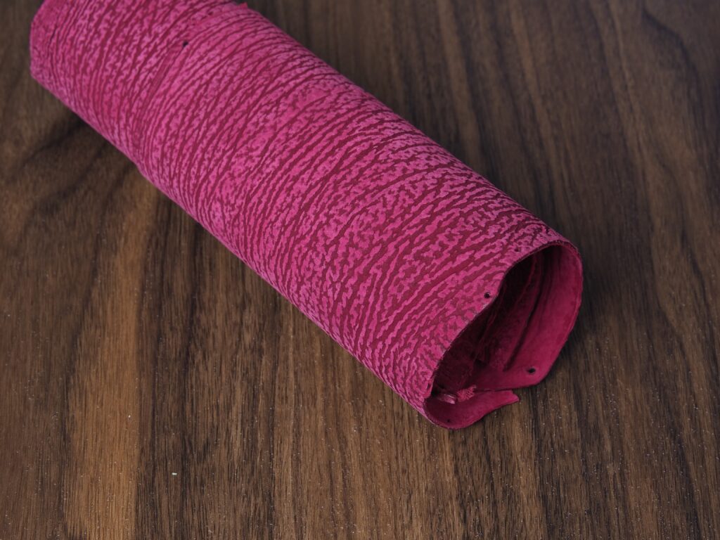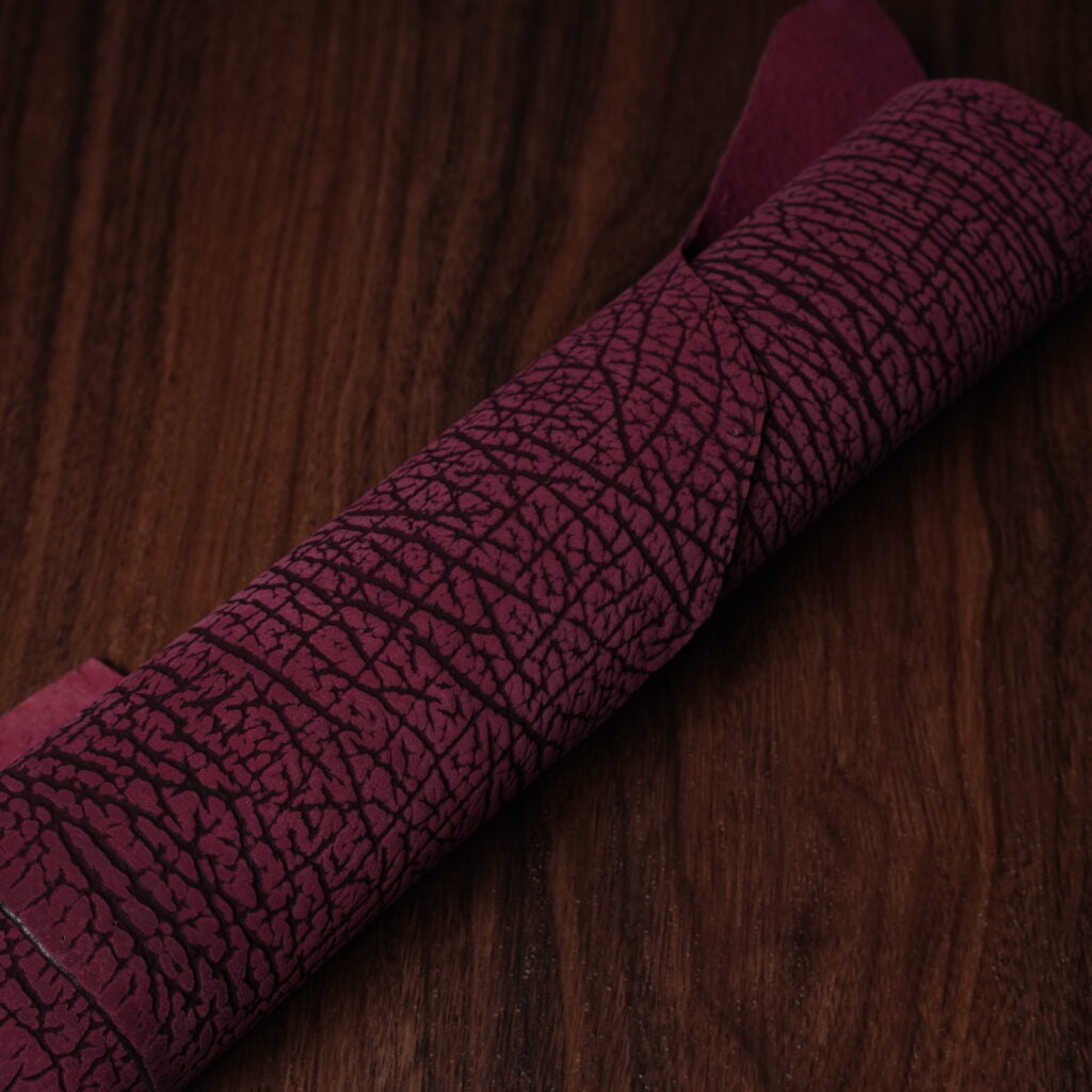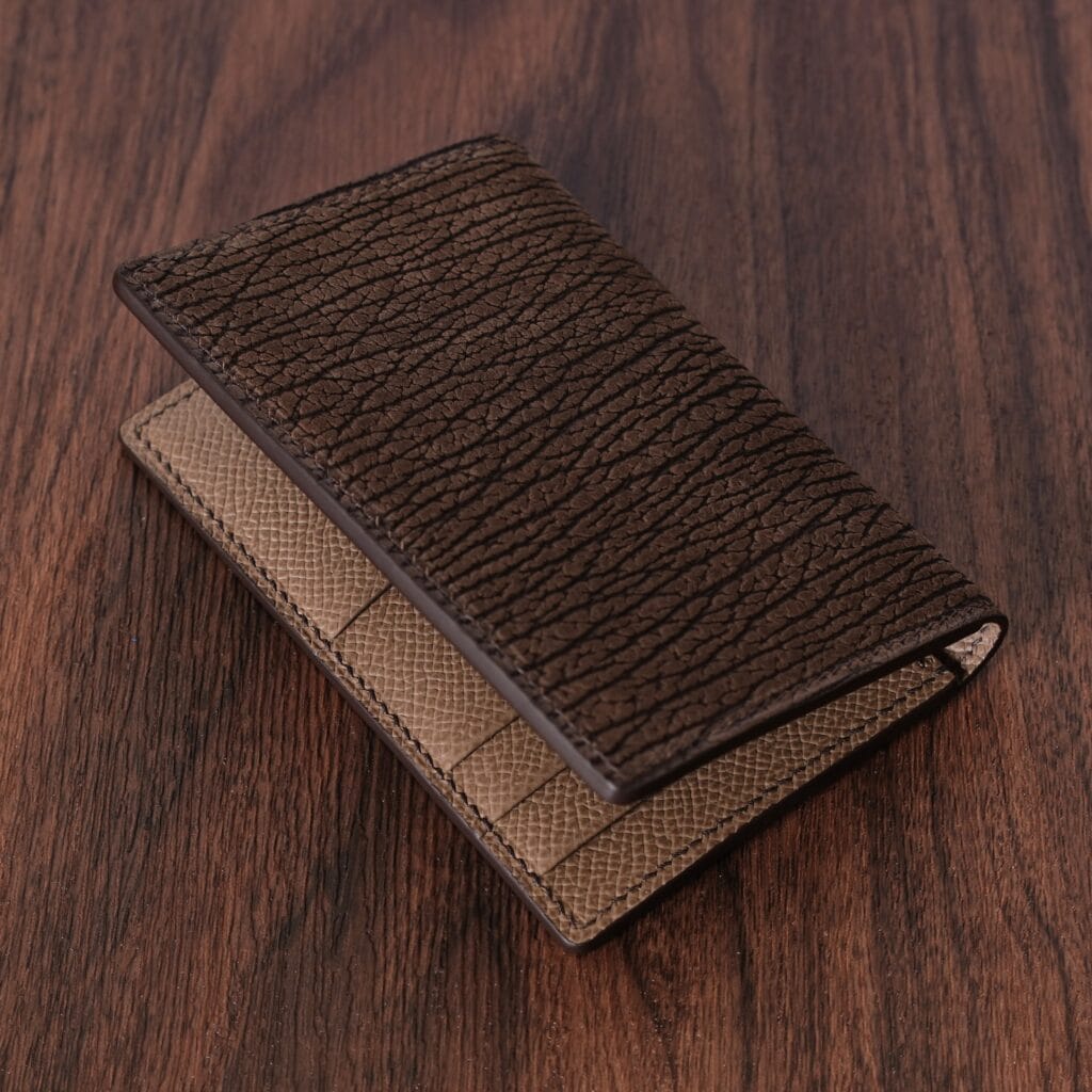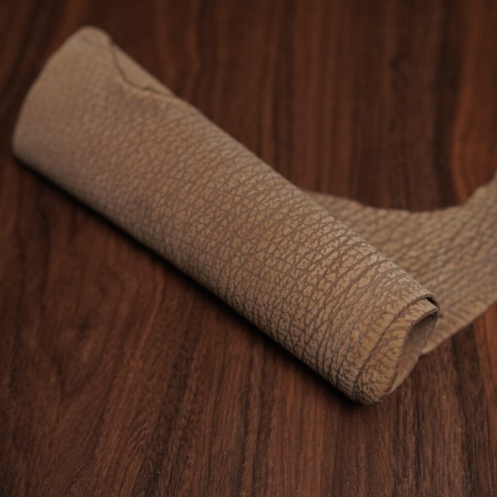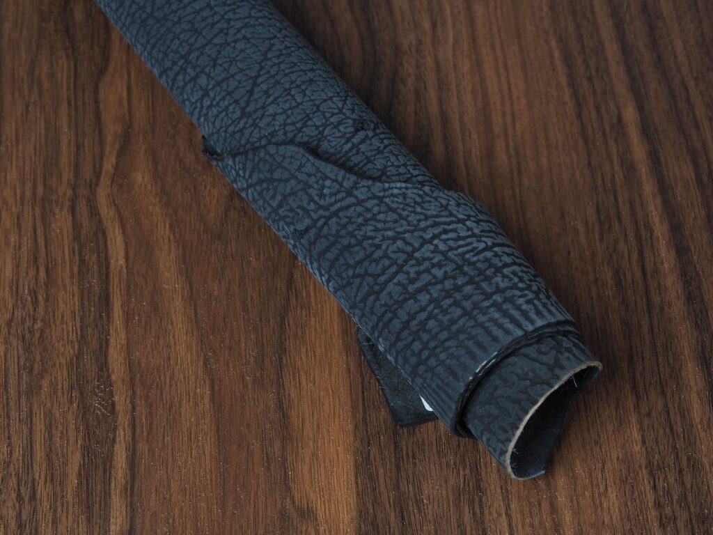Sharkskin is characterized by deep ridges in the skin, giving a wild texture. It’s regarded as one of the very toughest leathers there is, but despite that, this Japanese sharkskin has a wonderful soft and luxurious texture.