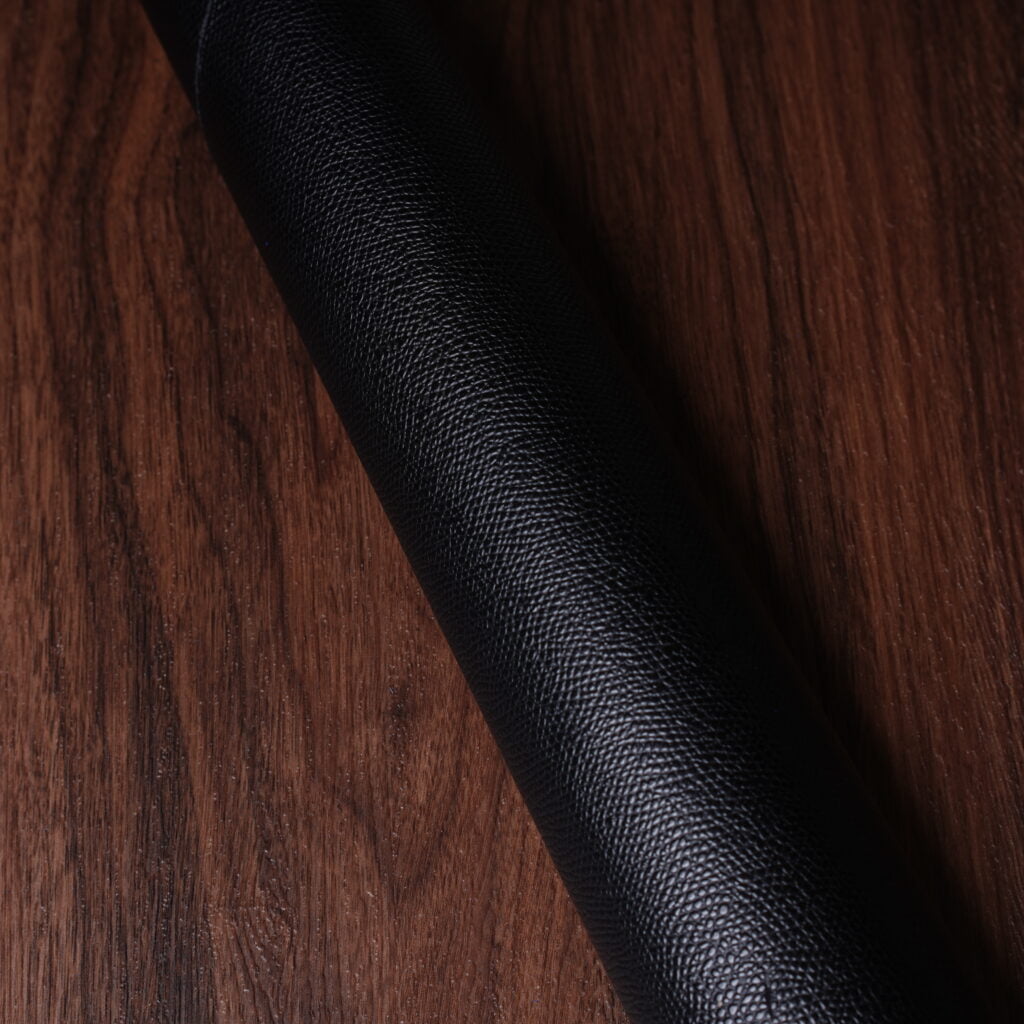 Textured leathers resist wear, like scratches, much better, and therefore will keep looking newer for much longer than smooth leathers. Epsom Calfskin and Sherpa (Buffalo Calfskin) are both extremely resistant. Epsom has uniform texture, whereas Sherpa has a more exotic look. Chèvre is also an excellent choice with more subtle texture. Taurillon is a grained leather with exceptional soft and waxy feel. It will change more over time compared to the other textured leathers.